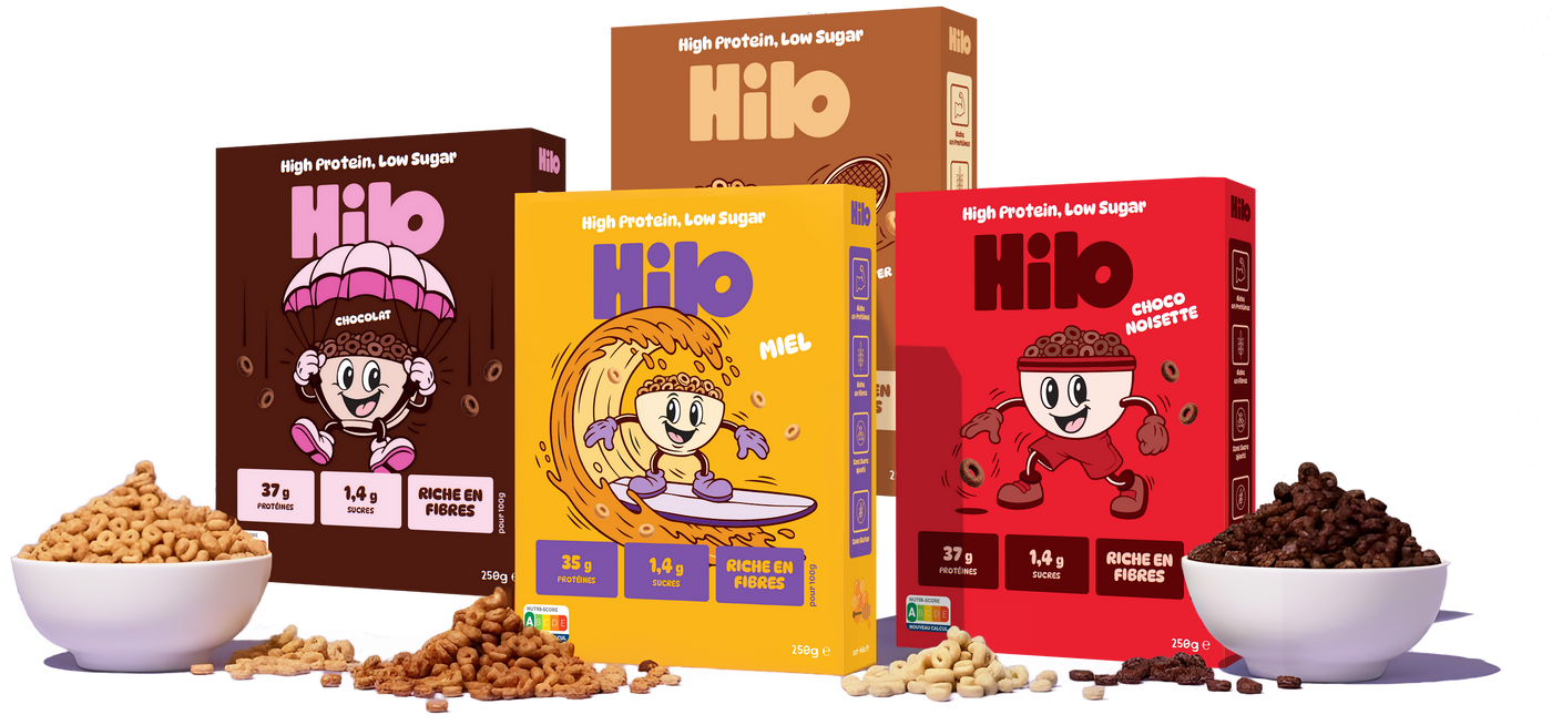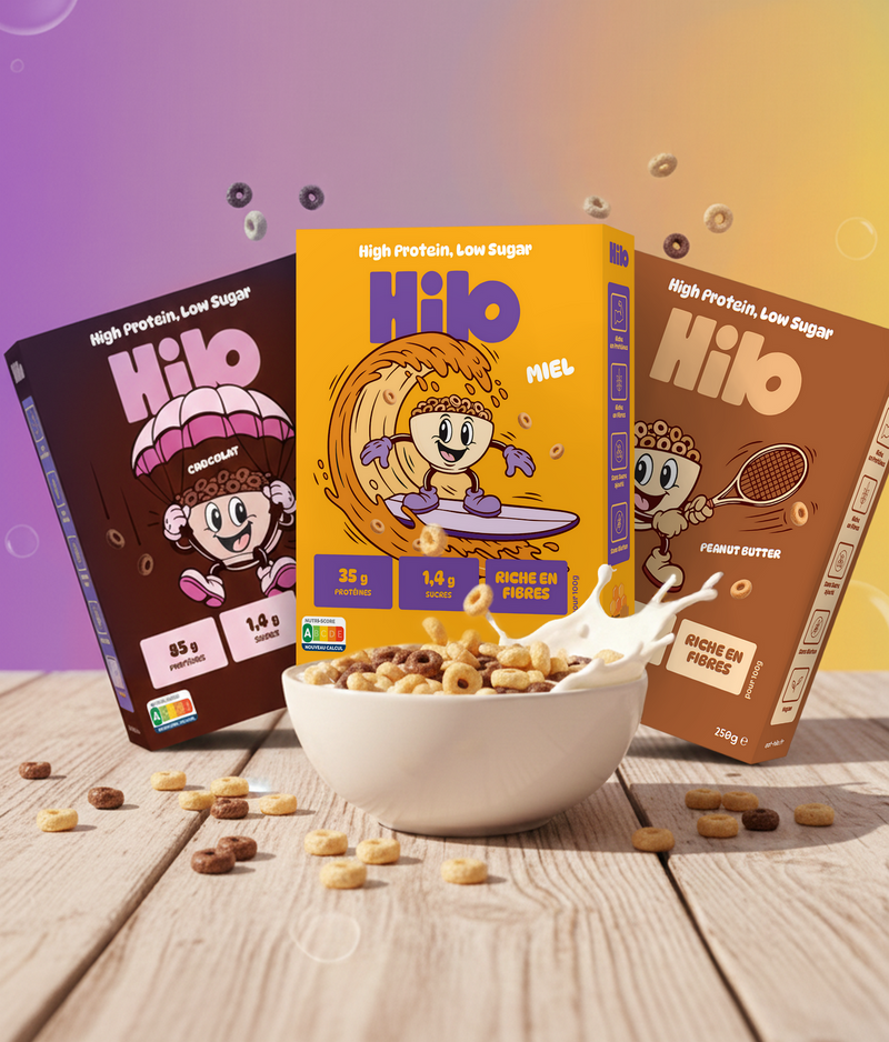 La liste d’ingrédients complète, les valeurs nutritionnelles et les allergènes sont disponibles sur chaque fiche produit HiLo et sur l’emballage des boîtes.
